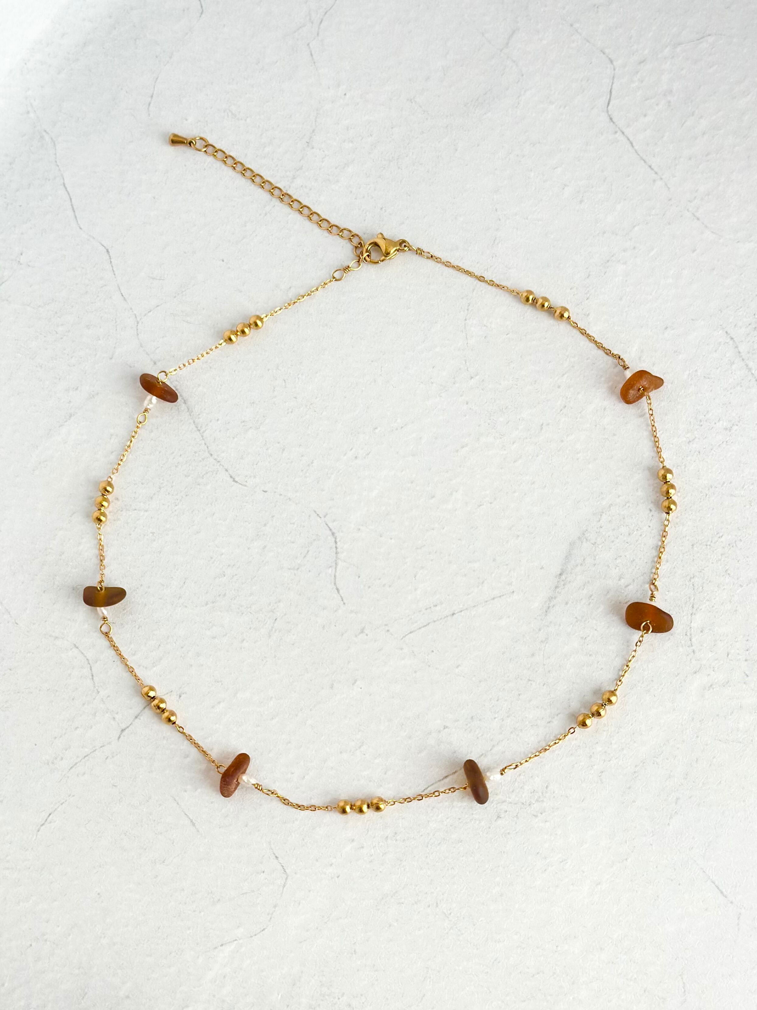 ほどよいツヤとしゅわしゅわ感のある淡水パールを合わせました。