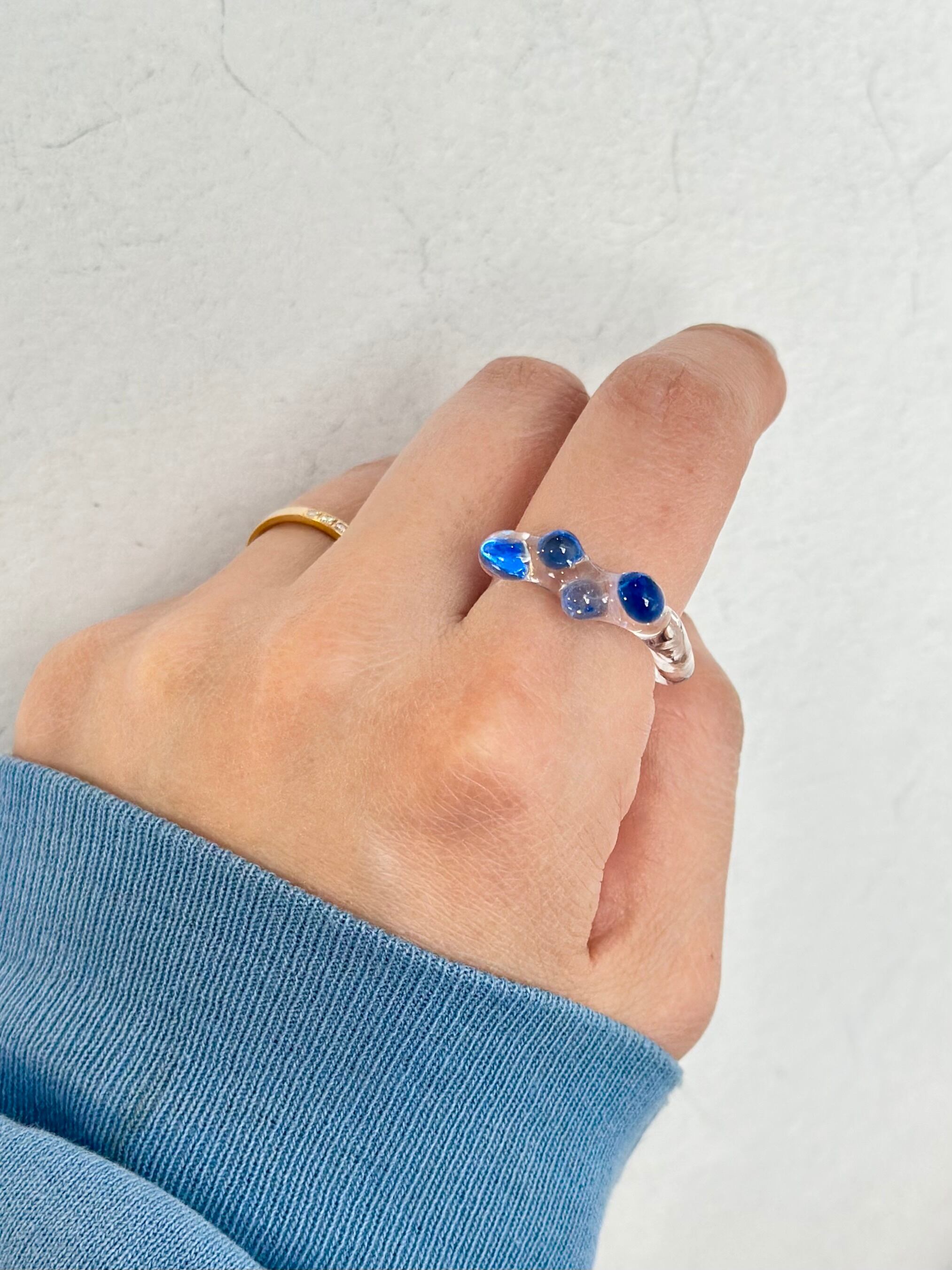 リングにもなるクリアイヤーカフ:コバルトブルー