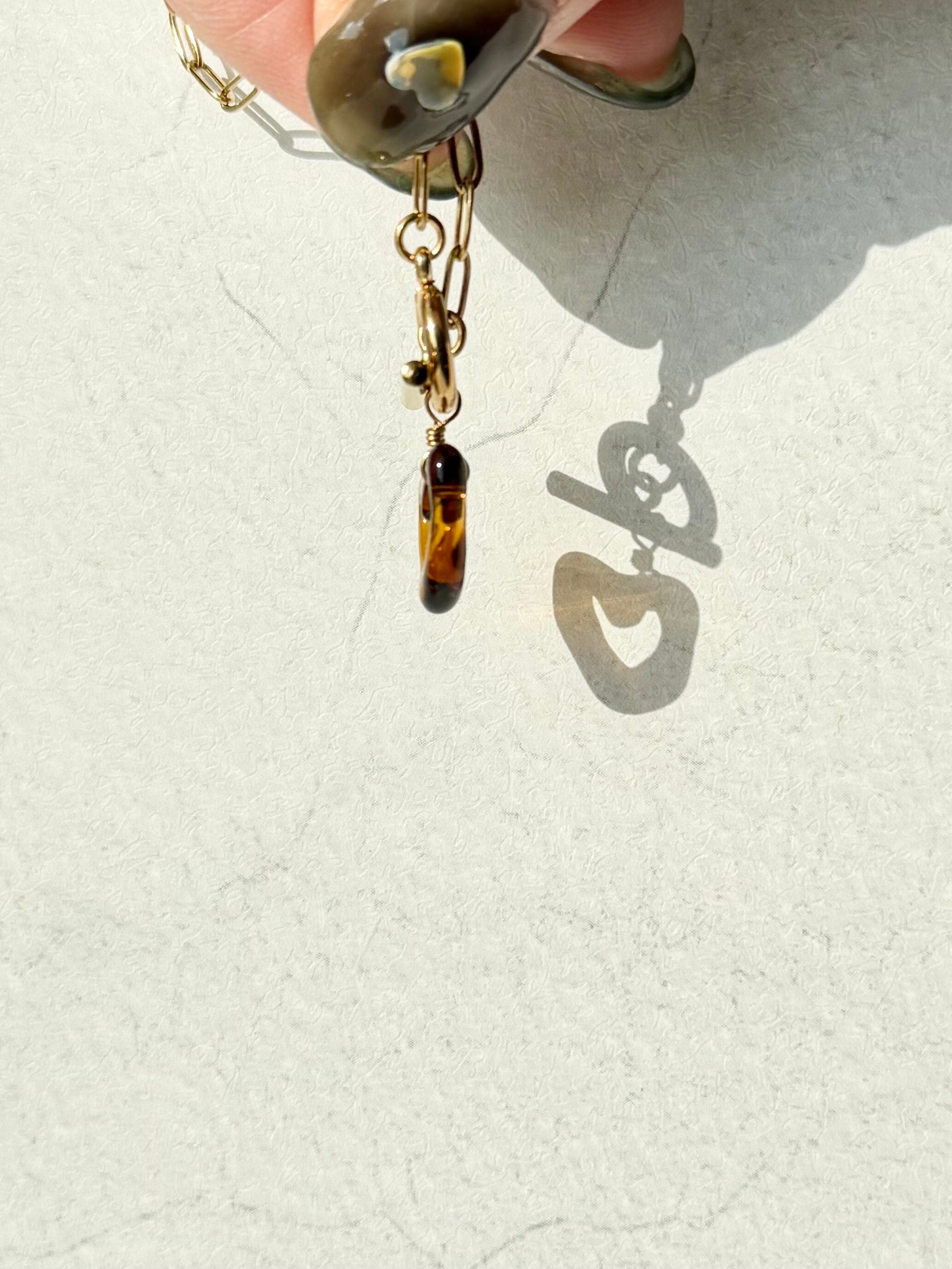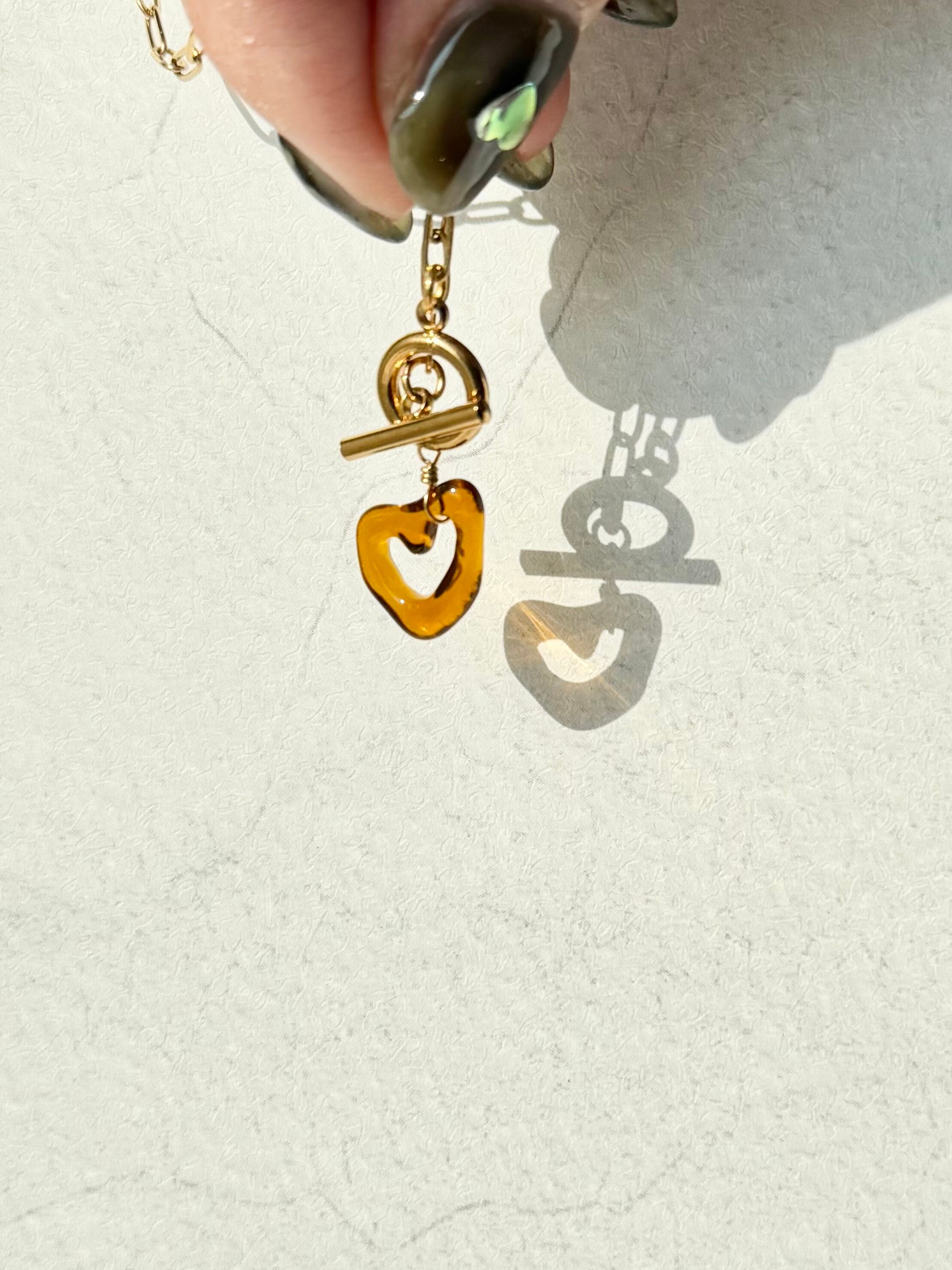 ハートのネックレス〈マンテル金具〉:クリアブラウン×ゴールド