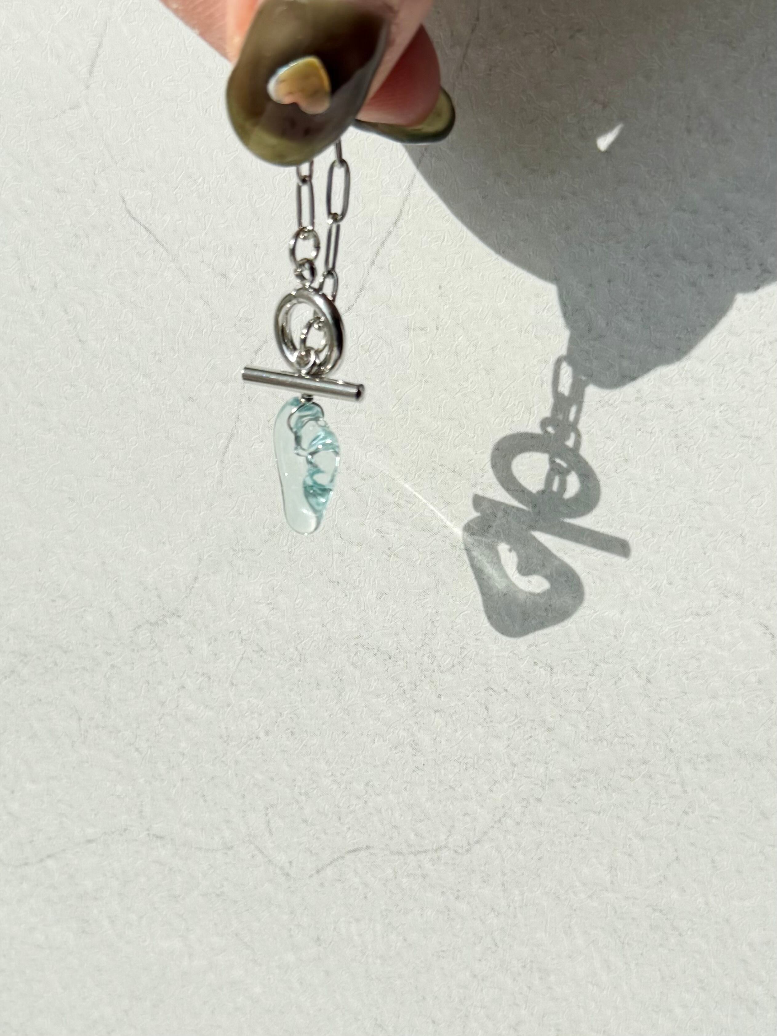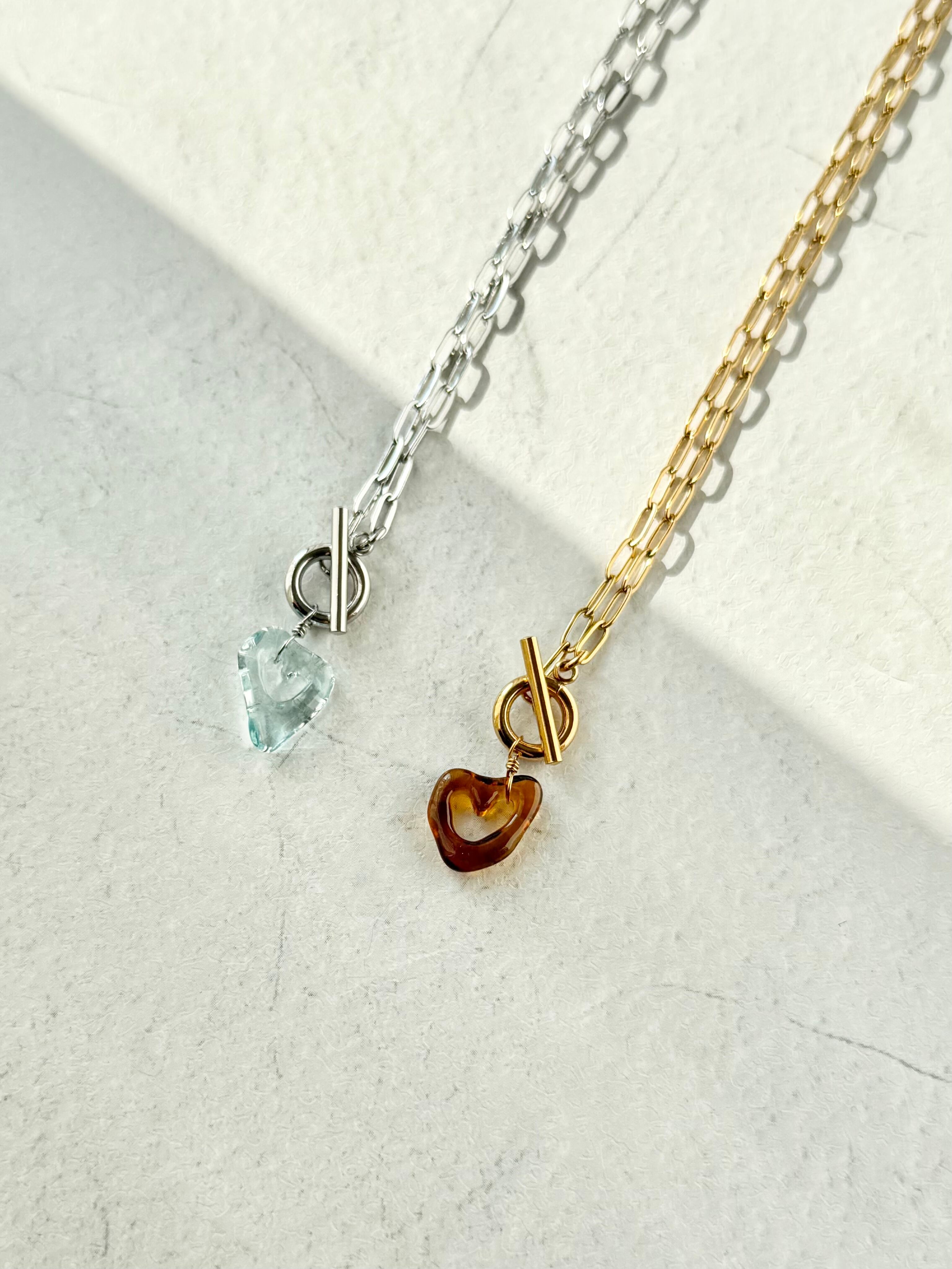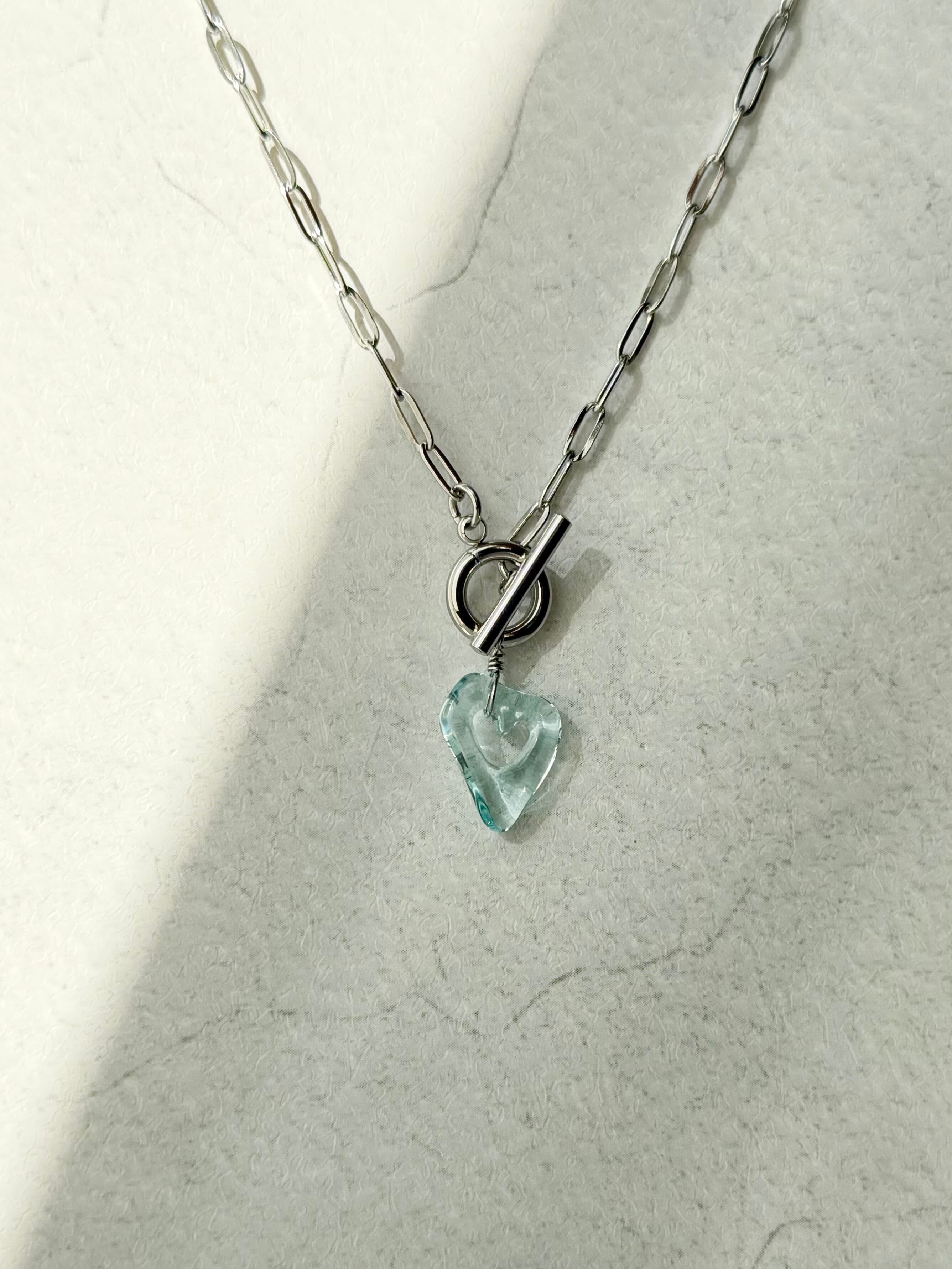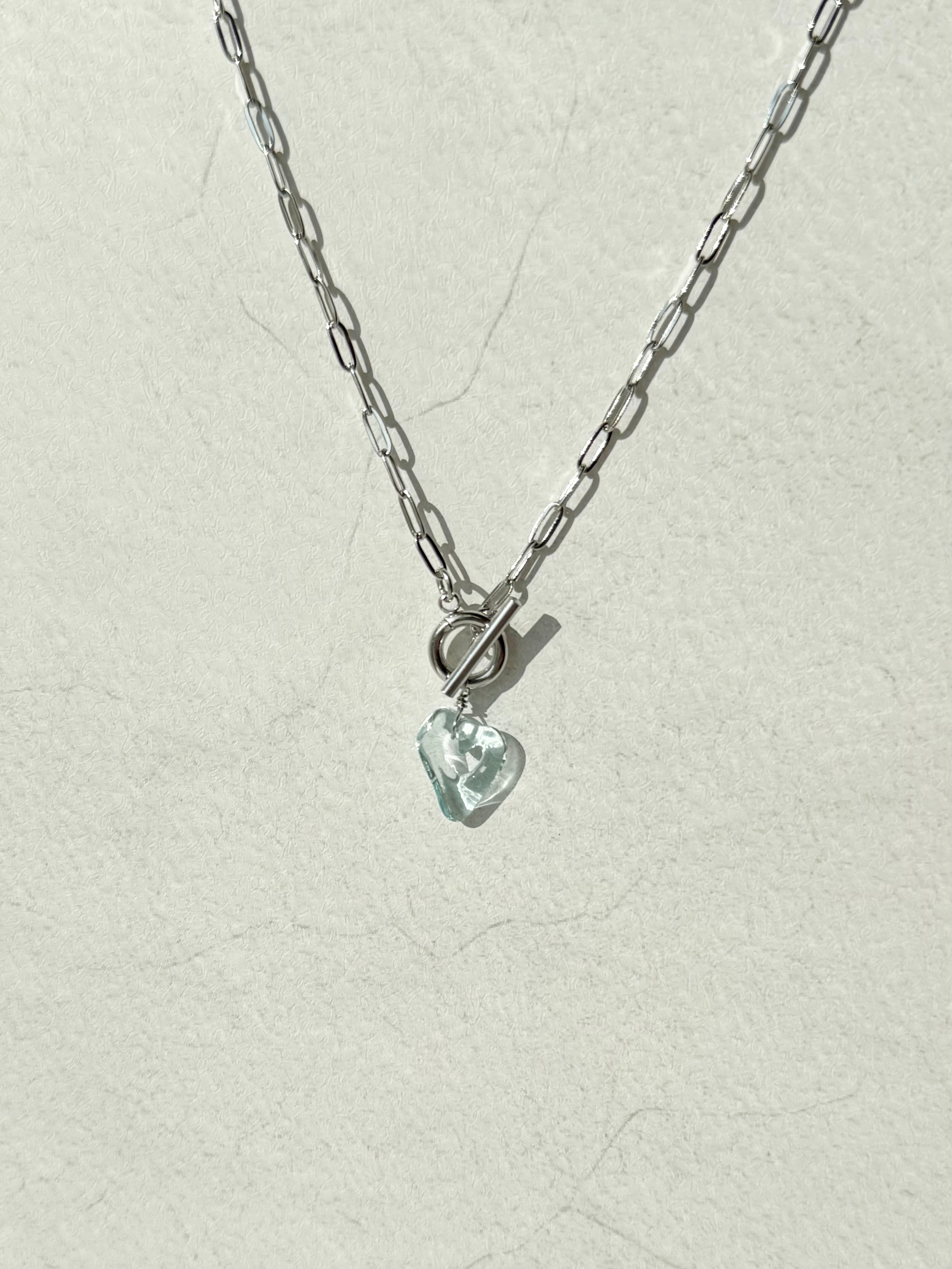 ハートのネックレス〈マンテル金具〉:クリアブルー×シルバー